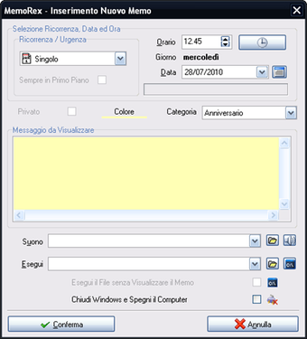 MemoRex ti permette di creare memo per il calendario o memo che appariranno sul tuo desktop e può essere programmato per spegnere il PC ad un'ora determinata. Inoltre, puoi impostare i suoni di allarme scegliendo tra diverse melodie o usando un file WAV di tua scelta.